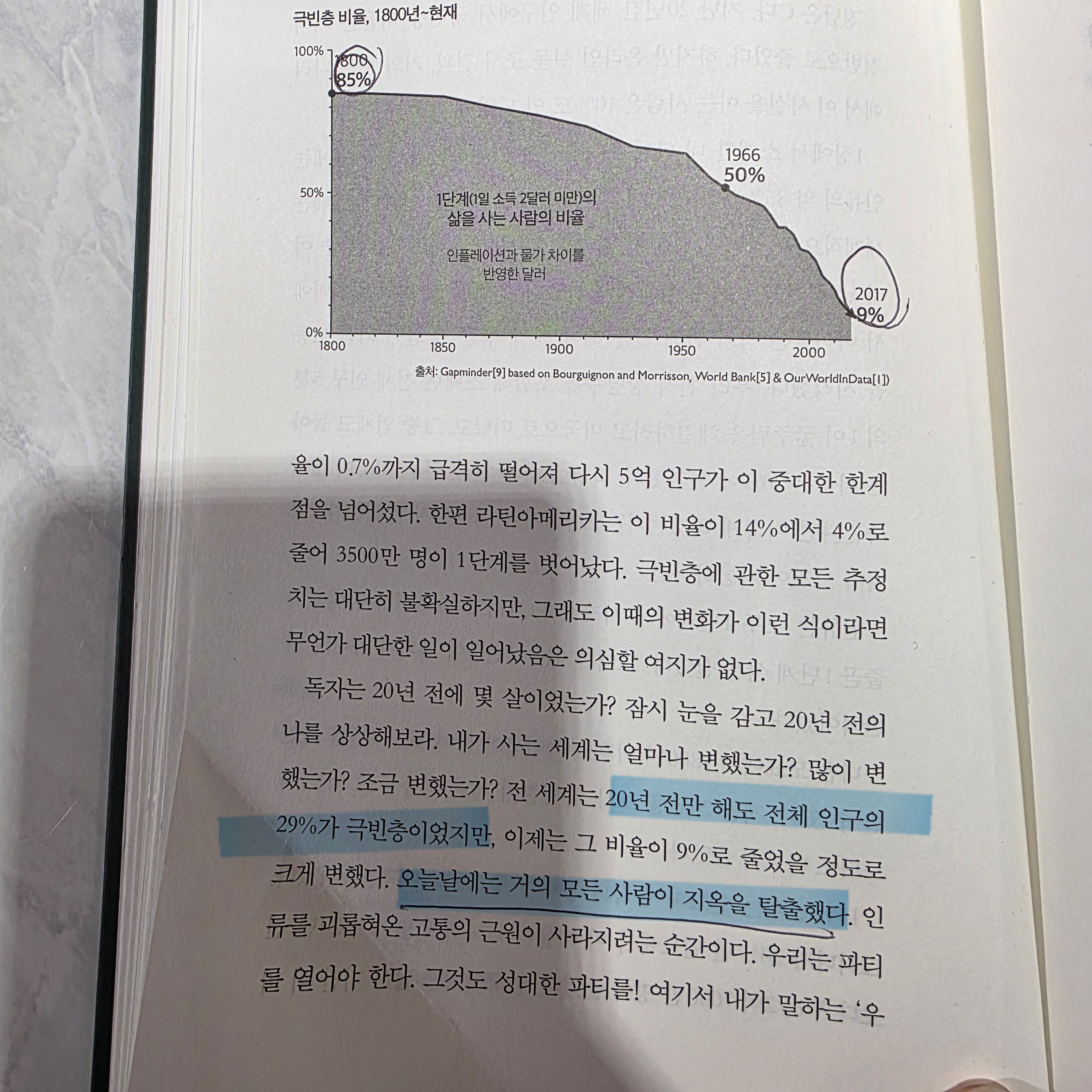 세상을 부정적으로 바라보는 인간의 편견에 대한 이야기다. 서문을 읽다보면 저자가 마치 낙관주의자처럼 보이기도 한다. 하지만 본문을 읽을수록, 제시하는 통계를 보면 현실은 나아지고 있다는 것에 동의할 수 밖에 없었다.