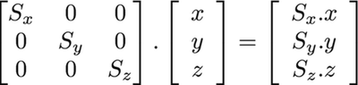 행렬을 사용하여 객체의 크기도 조정할 수 있다.