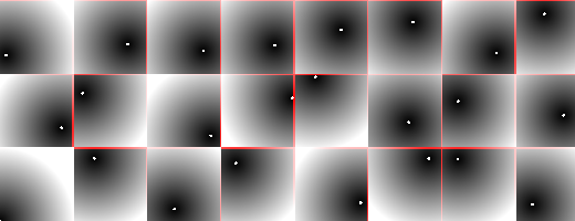 이제 각 픽셀은 위에서 만든 점까지의 거리값을 구한다.