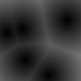 예를 들어, 4개의 점으로 구성된 거리 필드를 만들어보자.