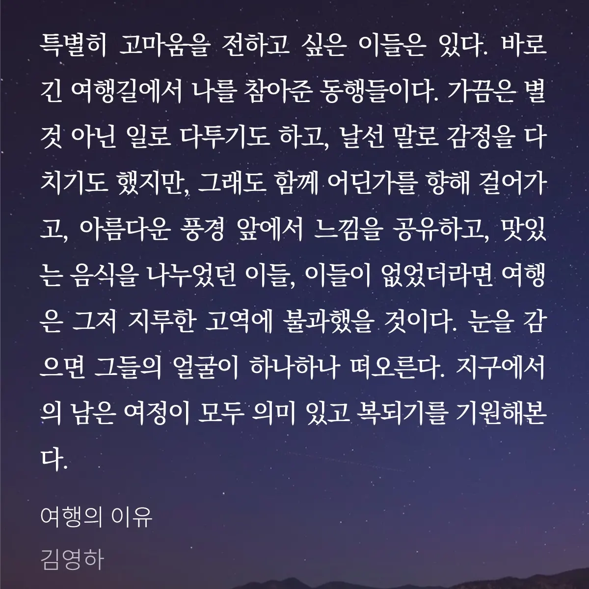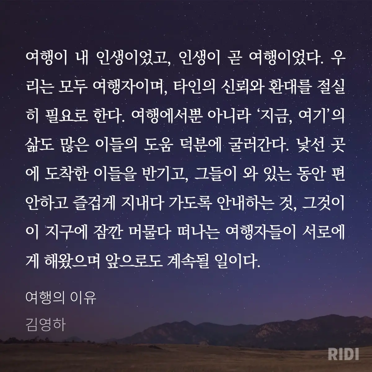 김영하 작가의 여행 이야기로 책이 시작된다. 재밌는 이야기들이네.. 읽기 좋게 글을 잘쓰시네.. 라고 생각하며 읽게 된다. 그러다보면 어느새 책의 말미에 와있다. 그때 우리 인생이 여행과 같다는 점을 밝힌다. 결국 여행이 아닌 인생에 대해 말하고 싶었던 것이다.