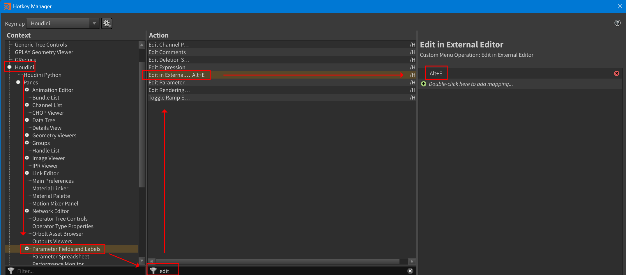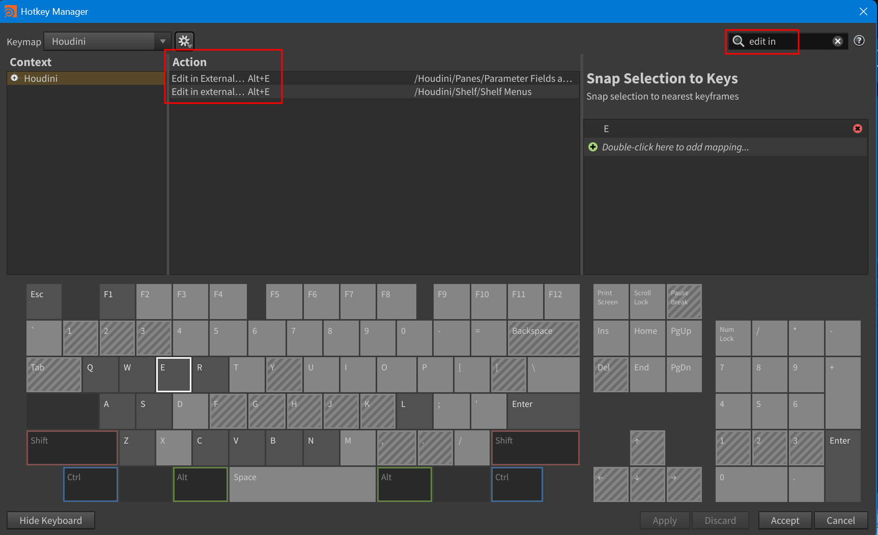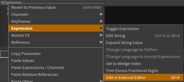 Hotkey를 Alt + E로 설정하고, VEXpression에 마우스 커서를 올린 뒤, Alt +E를 누르면 된다.