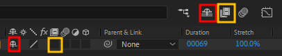 각 레이어별로 타임라인 패널에서의 숨김 여부를 선택할 수 있다.