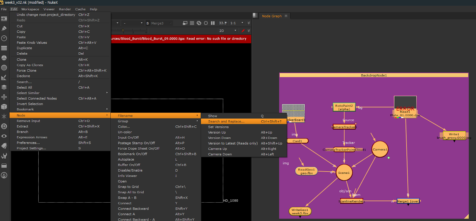 - edit - node - filename - search and replace로 창 열기 (단축키 Ctrl + Shift + ?)