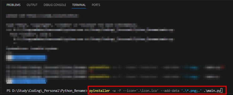 --add-data는 원하는 파일을 같이 압축시키는 것이다. 그래야 이미지 등이 정상적으로 나온다.