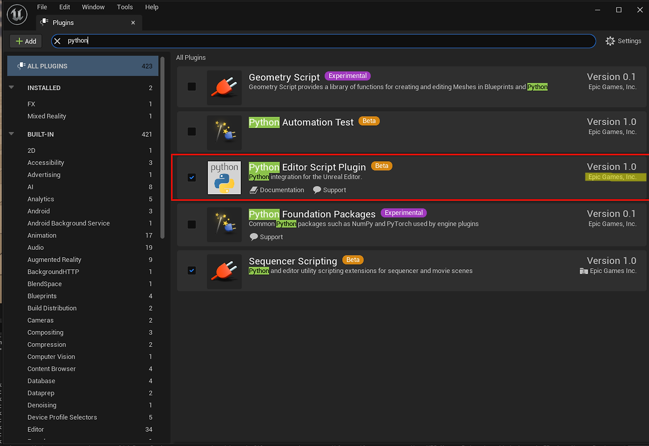 설정시 콘텐츠 브라우저에 .py 파일이 뜨며 실행이 가능하다.