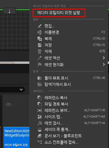 콘텐츠 브라우저 우클릭 - 에디터 유틸리티 - 에디터 유틸리티 위젯 생성