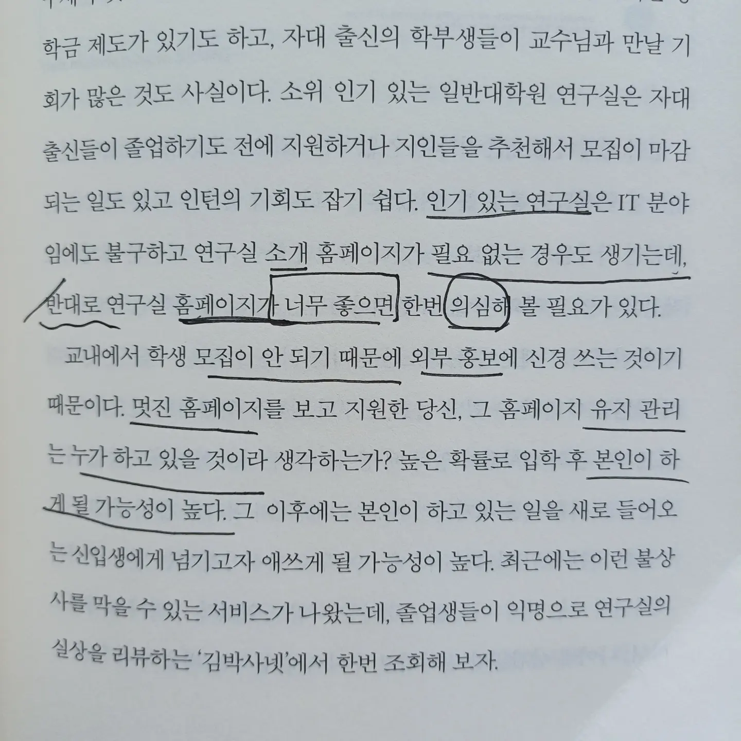 예컨대 유용한 사이트와 행사, 대학원에 관한 내용들이 있다.