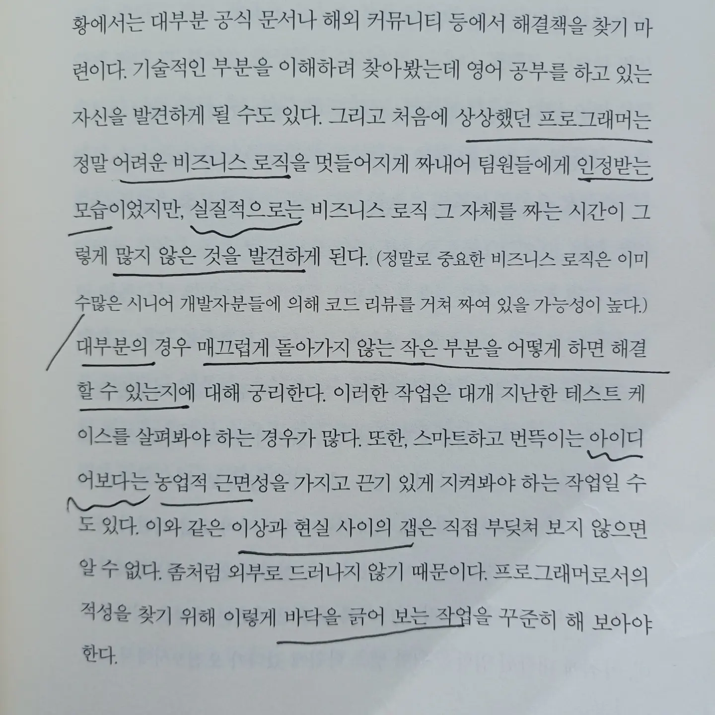 프로그래밍에 관한 구체적인 내용들과 현실적 조언들이 있어 좋았다.