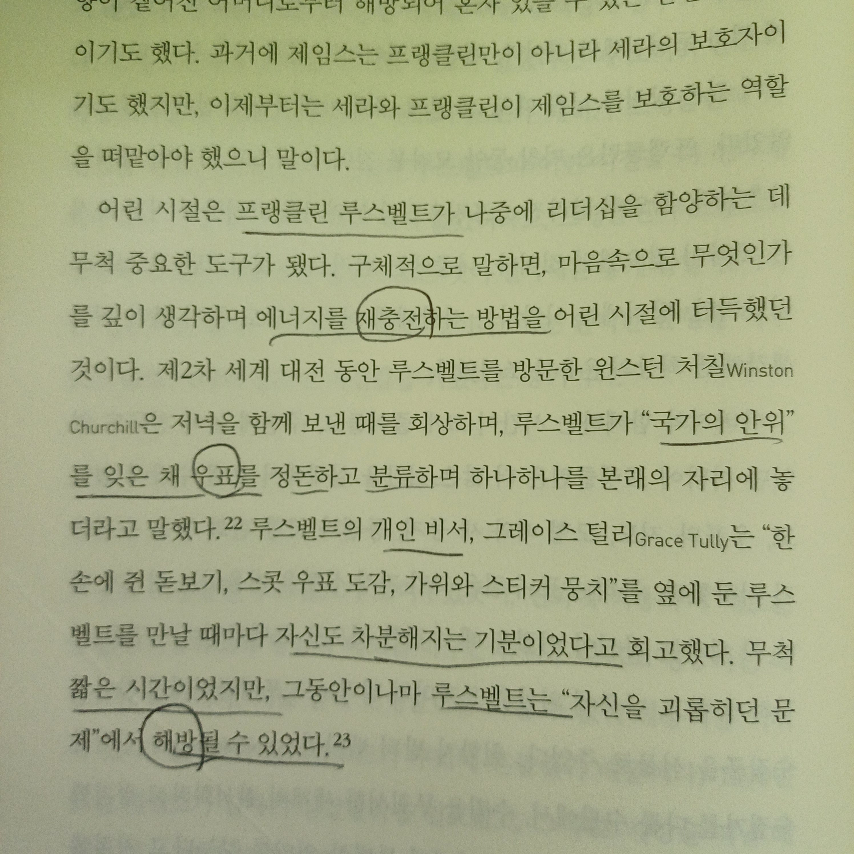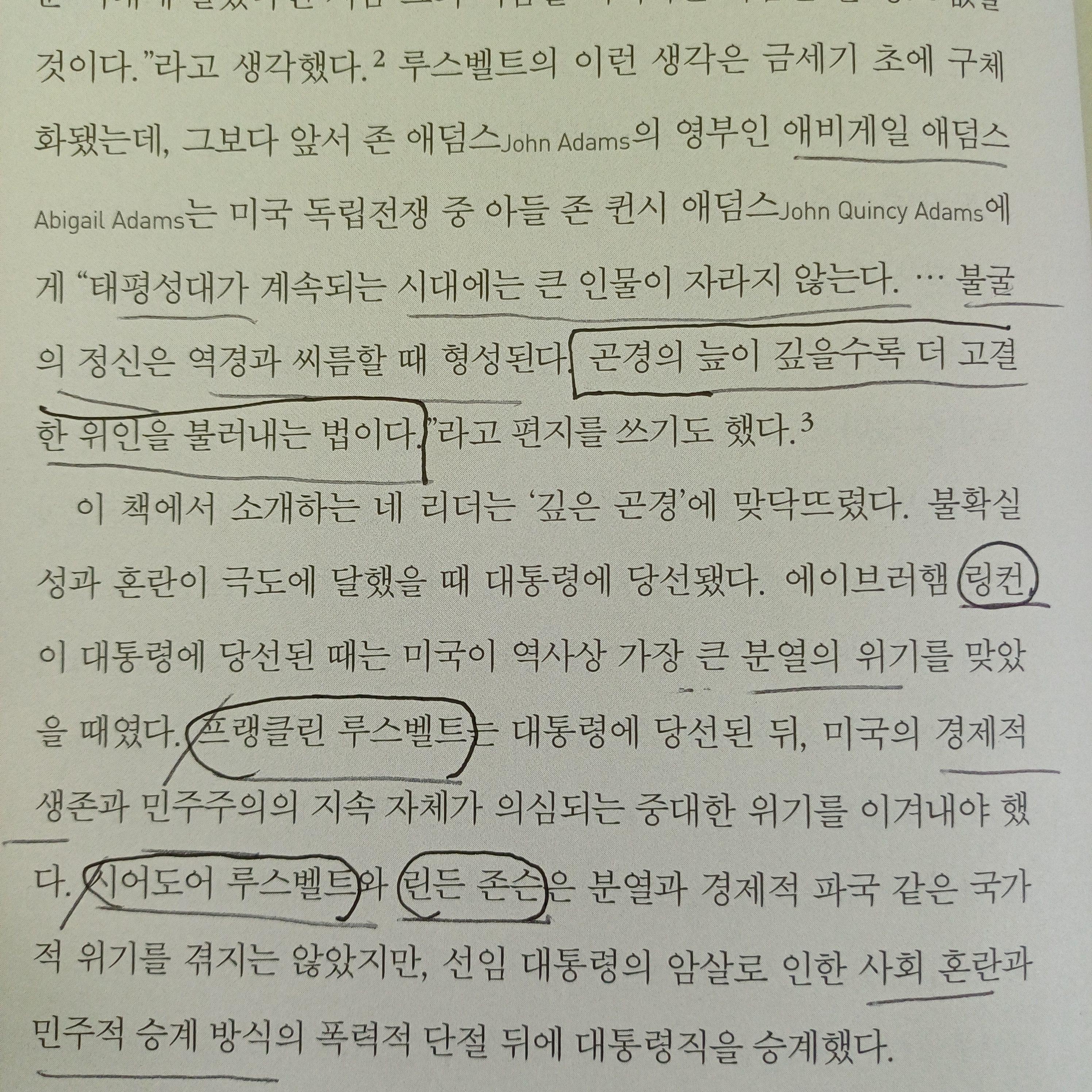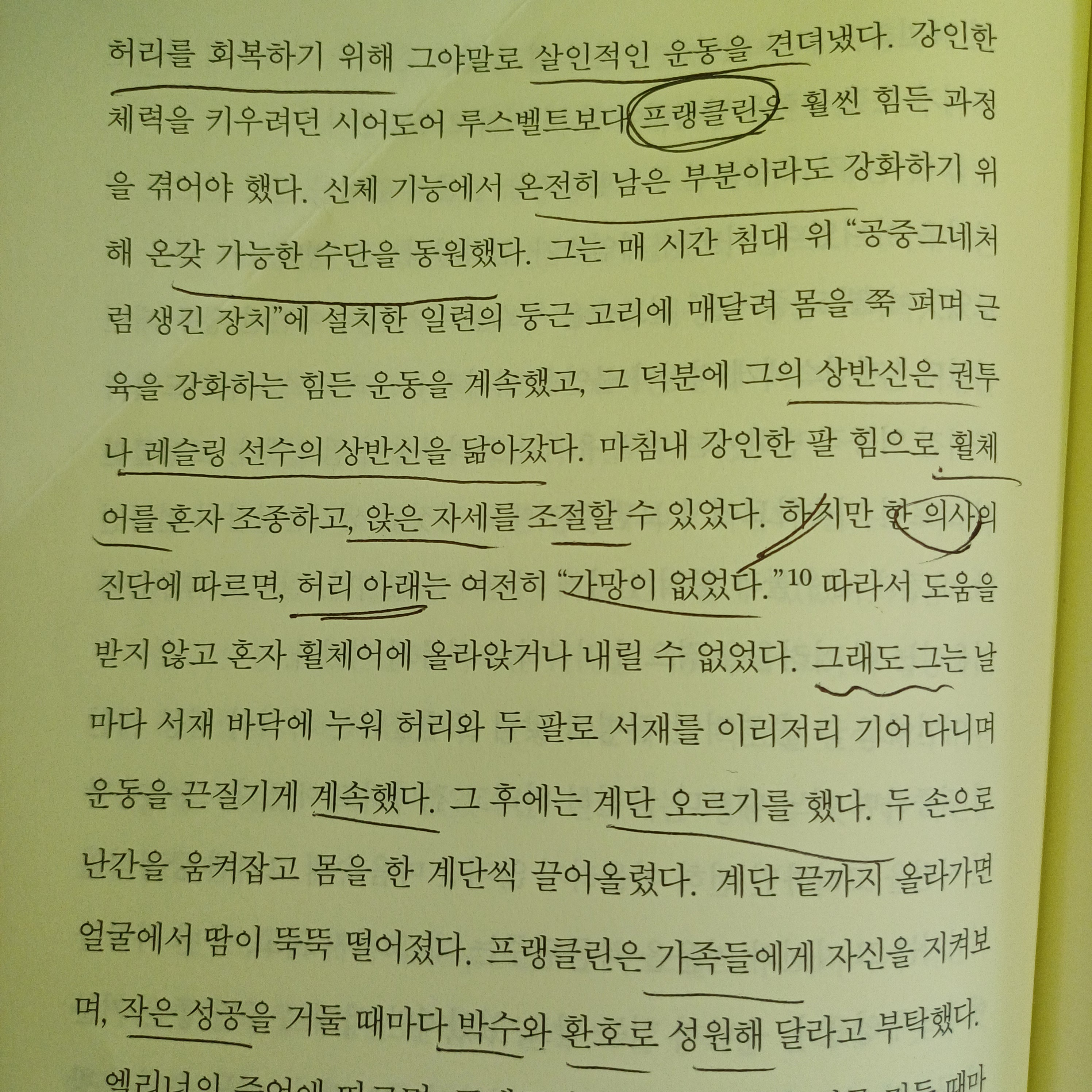 링컨과 같은 훌륭한 거인이 영감을 주어, 또 다른 리더인 프랭클린을 탄생시키는 모습을 보면서 한 사람의 영향력이 얼마나 큰지 새삼 느끼게 된다. 미약한 나도 거인의 어깨에 올라타, 타인에게 좋은 영향력을 주는 사람이 될 수 있을지 반성하게 된다.