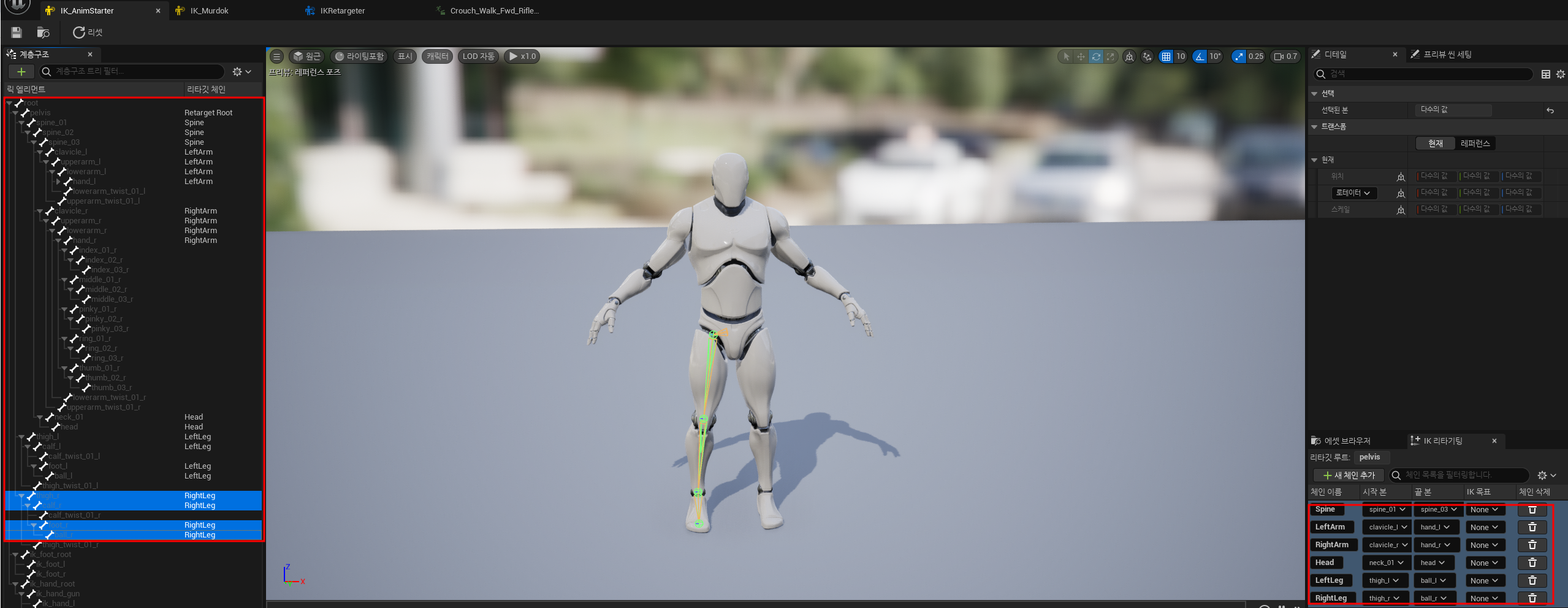5. IK 리타기터 프리뷰 설정 및 애니메이션 확인