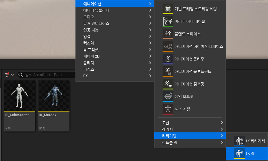 IK 리타기터 어셋을 더블클릭 후, 아래 절차대로 설정