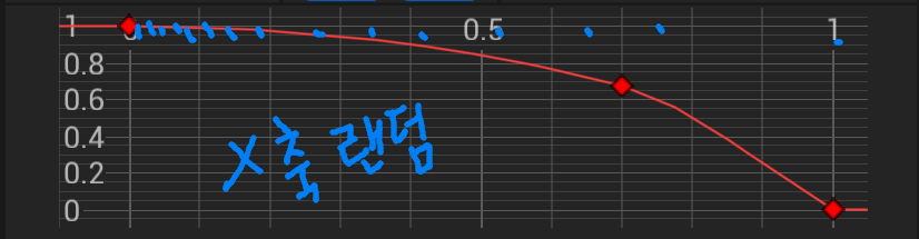 예컨대 파티클 사이즈에 랜덤을 주었으나, 가장 큰 사이즈의 파티클은 적게 생성되게 하고 싶을 때가 있다.