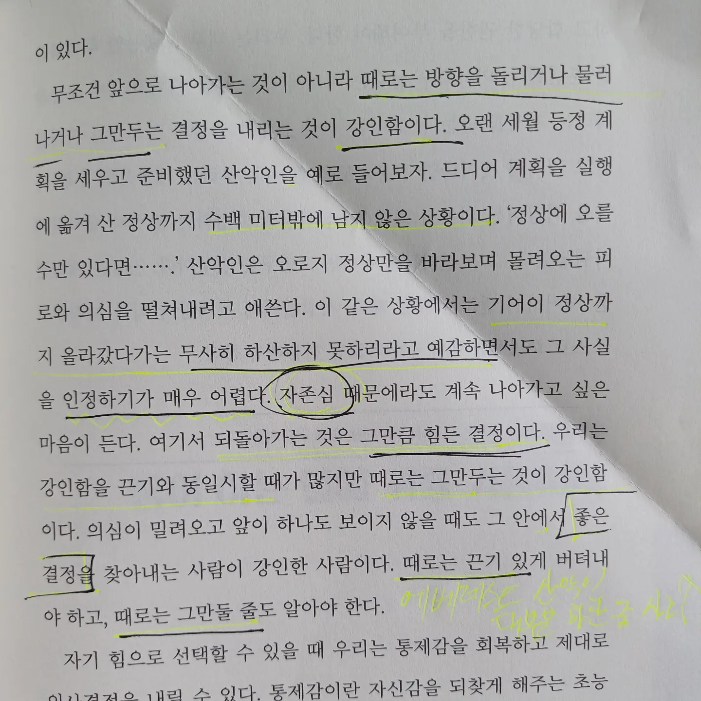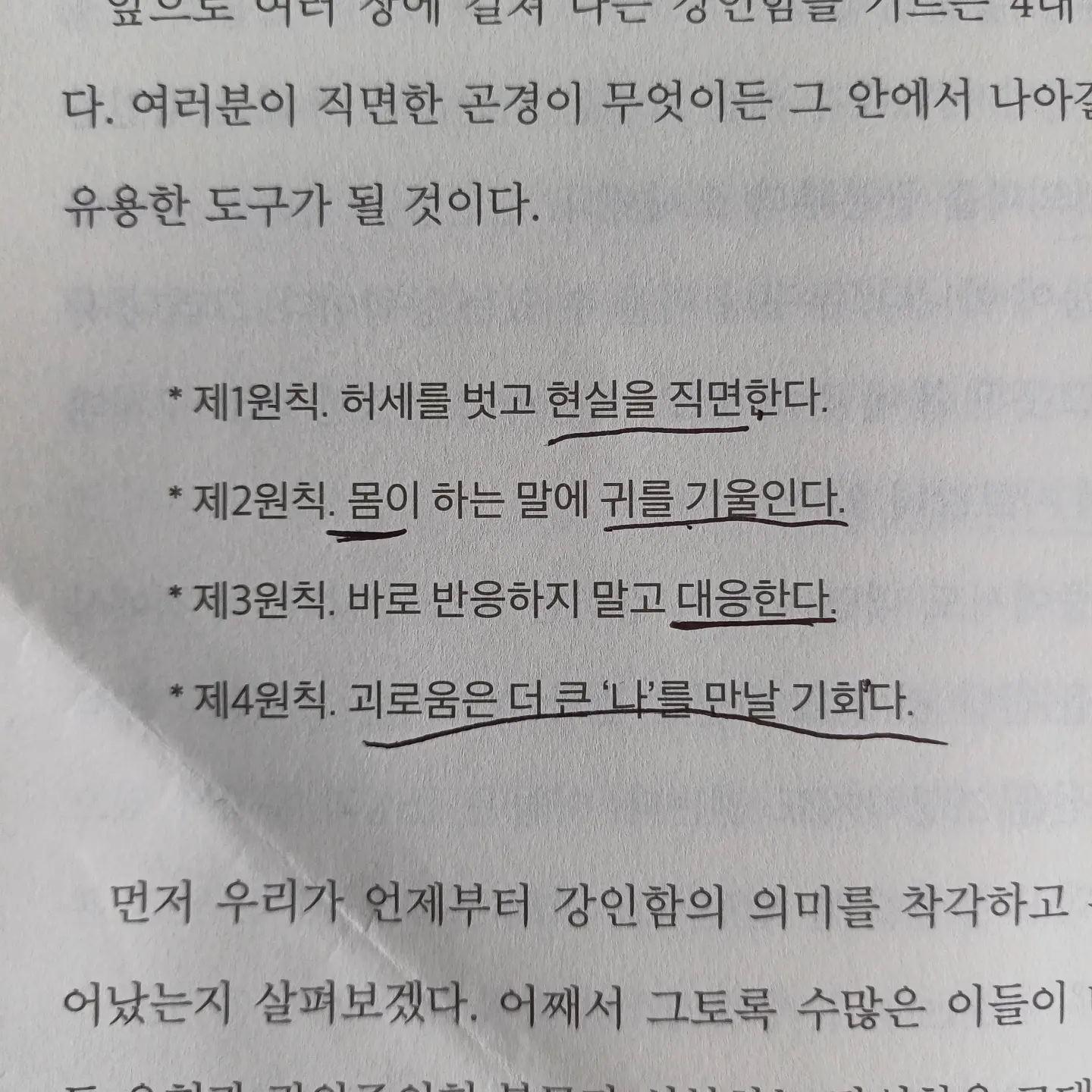 너무 좋은 책이라, 다 접어버려 부피가 2배가 되어버렸다. 지나고보면 성장하는 매순간의 길목에 고난이 있었음을 느낀다. 그런 것을 보면, 애석하게도 고난은 성장의 뒷면이라는 말을 인정하지 않을 수 없다.