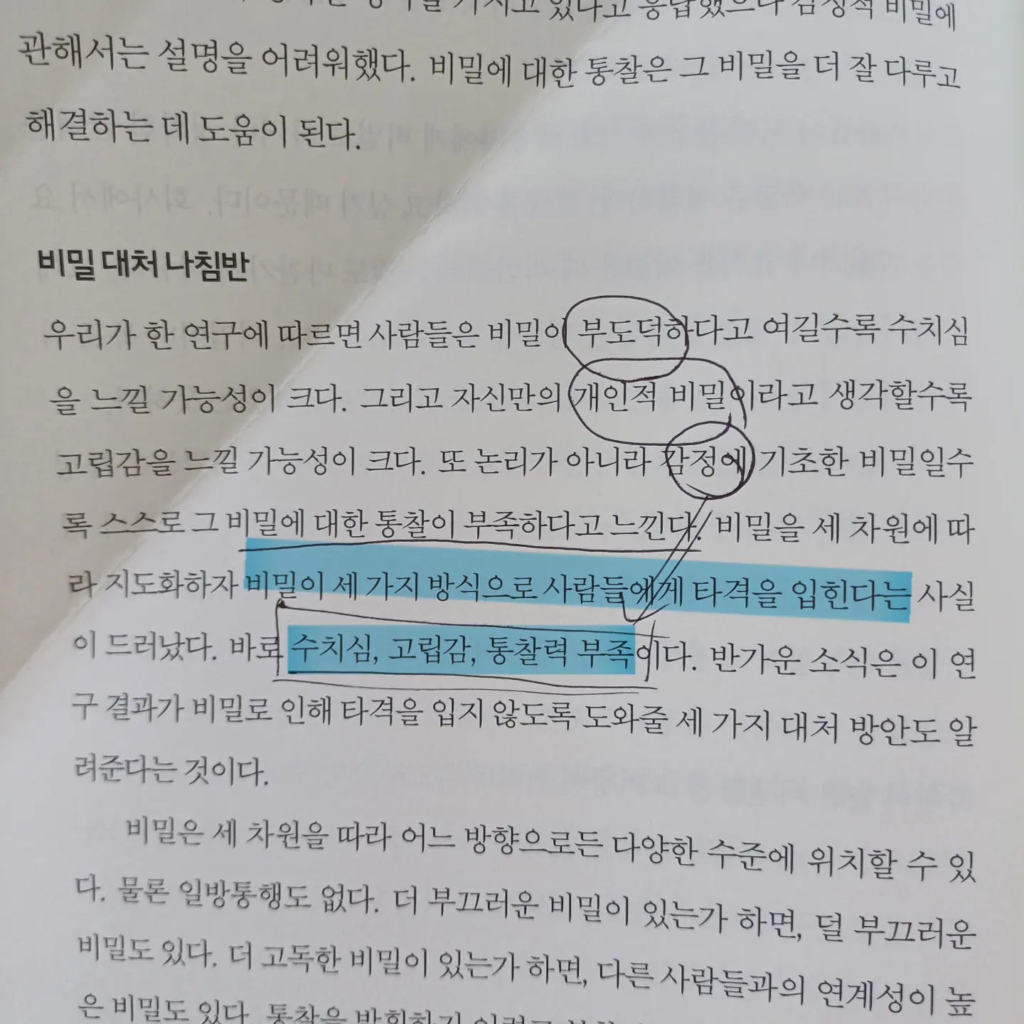 물론 남의 비밀을 발설하는 행위는 큰 문제를 야기하므로 여러 사례를 통해 얘기하는 것만이 능사가 아님을 경고하고 있다. 핵심은 '자신의 비밀'에 대한 다양하고 능동적인 대처전략이다.