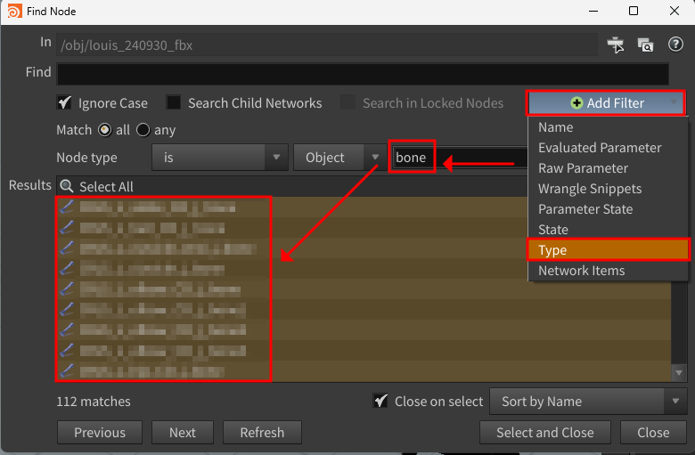 1. 네트워크 뷰에서, Ctrl + F로 노드 찾기 실행