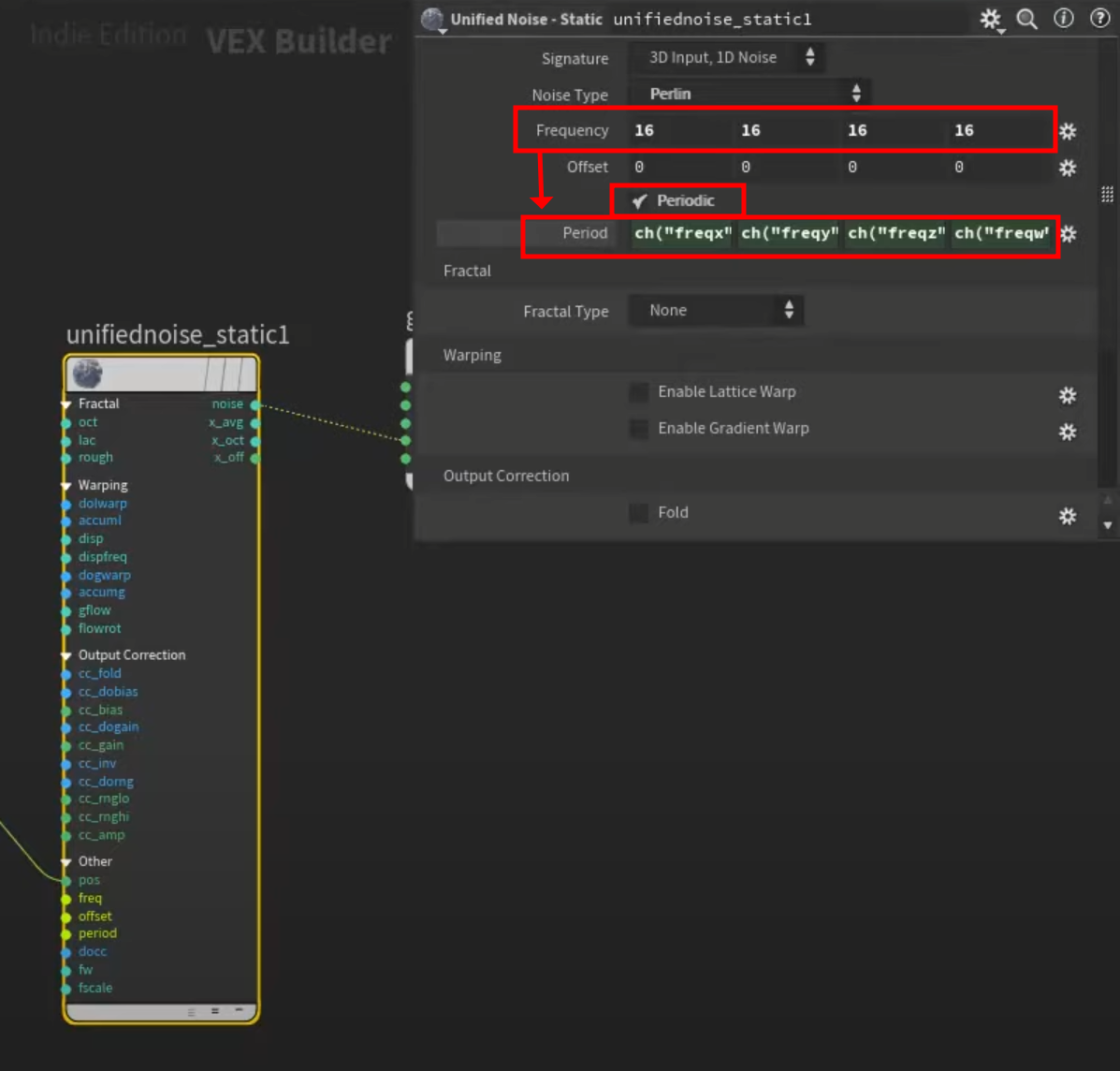후디니에서 반복되는 패턴의 노이즈를 만드는 방법을 소개한다.
