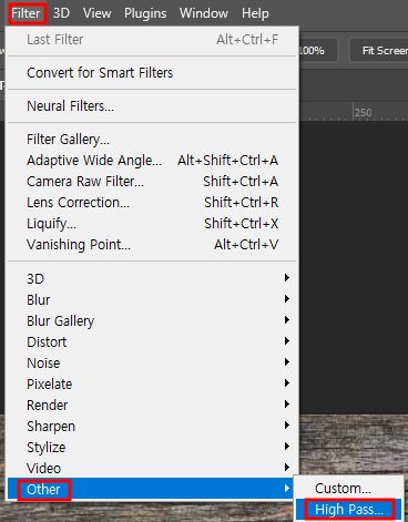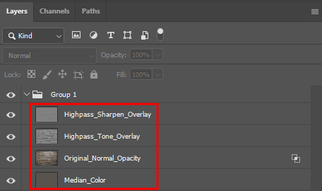 핵심은 Highpass를 Overlay 모드로 사용한다는 것.