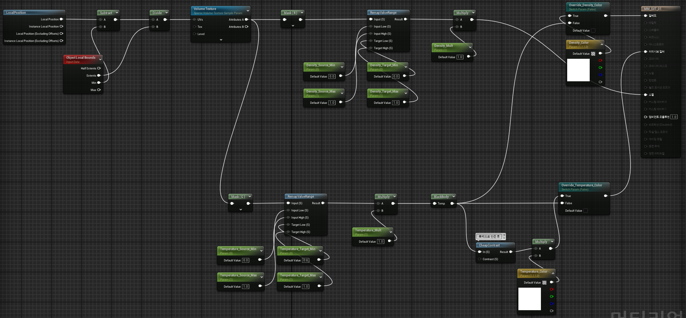언리얼에서 VDB를 SVT로 불러와 적용하는 방법을 알아본다.