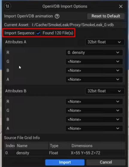 - 언리얼 에셋 브라우저에서 VDB 임포트