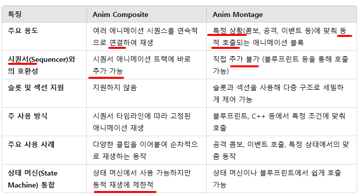 언리얼에서 Anim Montage는 Anim Composite와 달리 시퀀서의 애니메이션 트랙에 직접 입력되지 않는다.