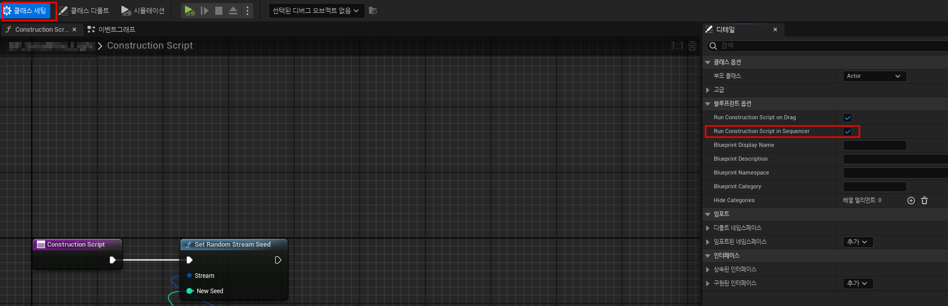 아래와 같이 클래스 세팅 후, 시네마틱에 노출을 필히 체크한다.
