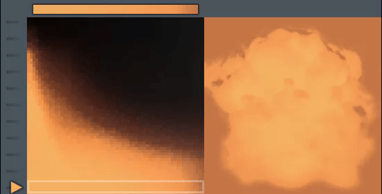 시퀀스 이미지를 재생 시키면서, 파티클 수명에 따라 그라디언트 맵핑을 적용시켜 색상과 알파 값에 변화를 준다.