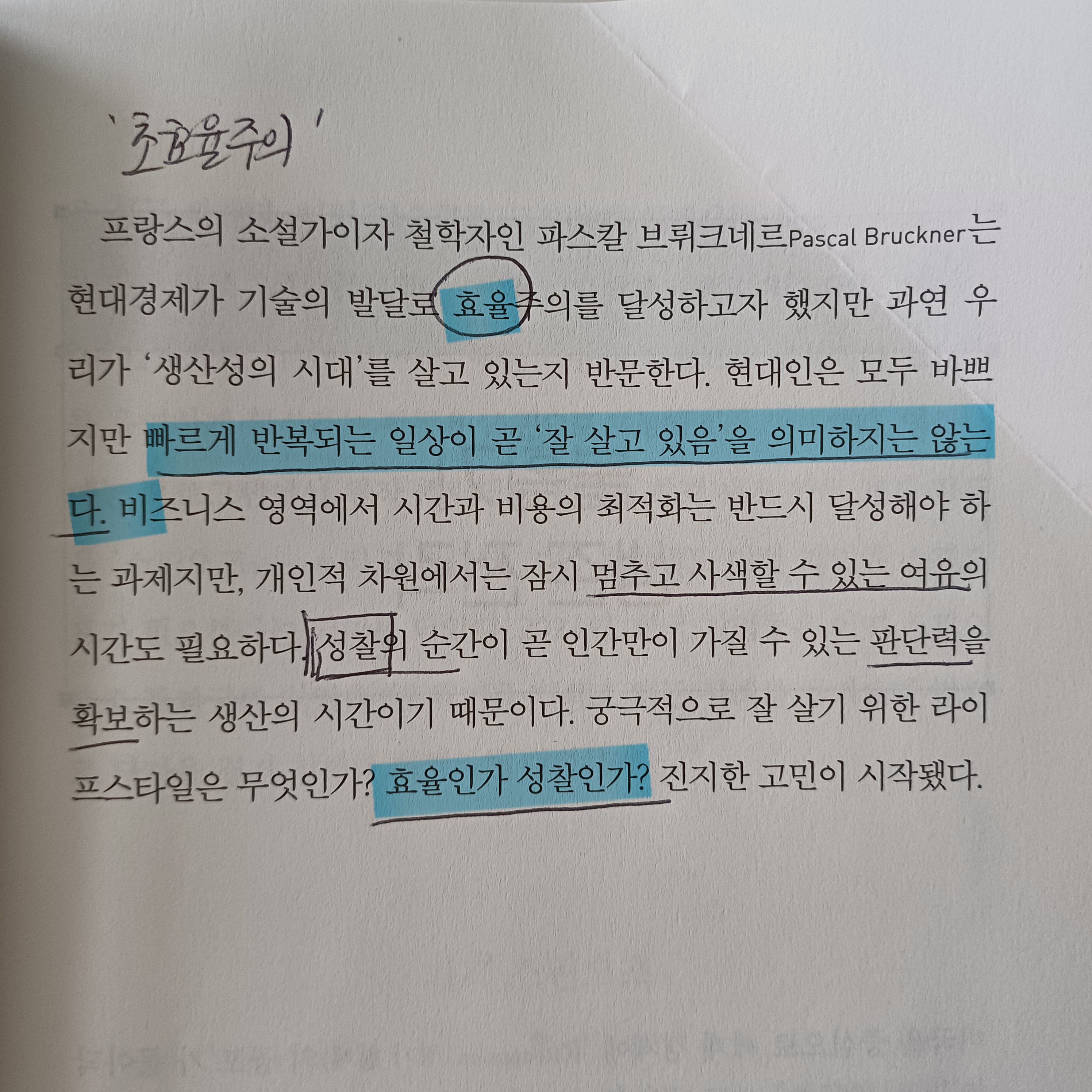 이번에는 특히 초효율주의에 대한 비판적 시각이 가장 인상 깊었다.