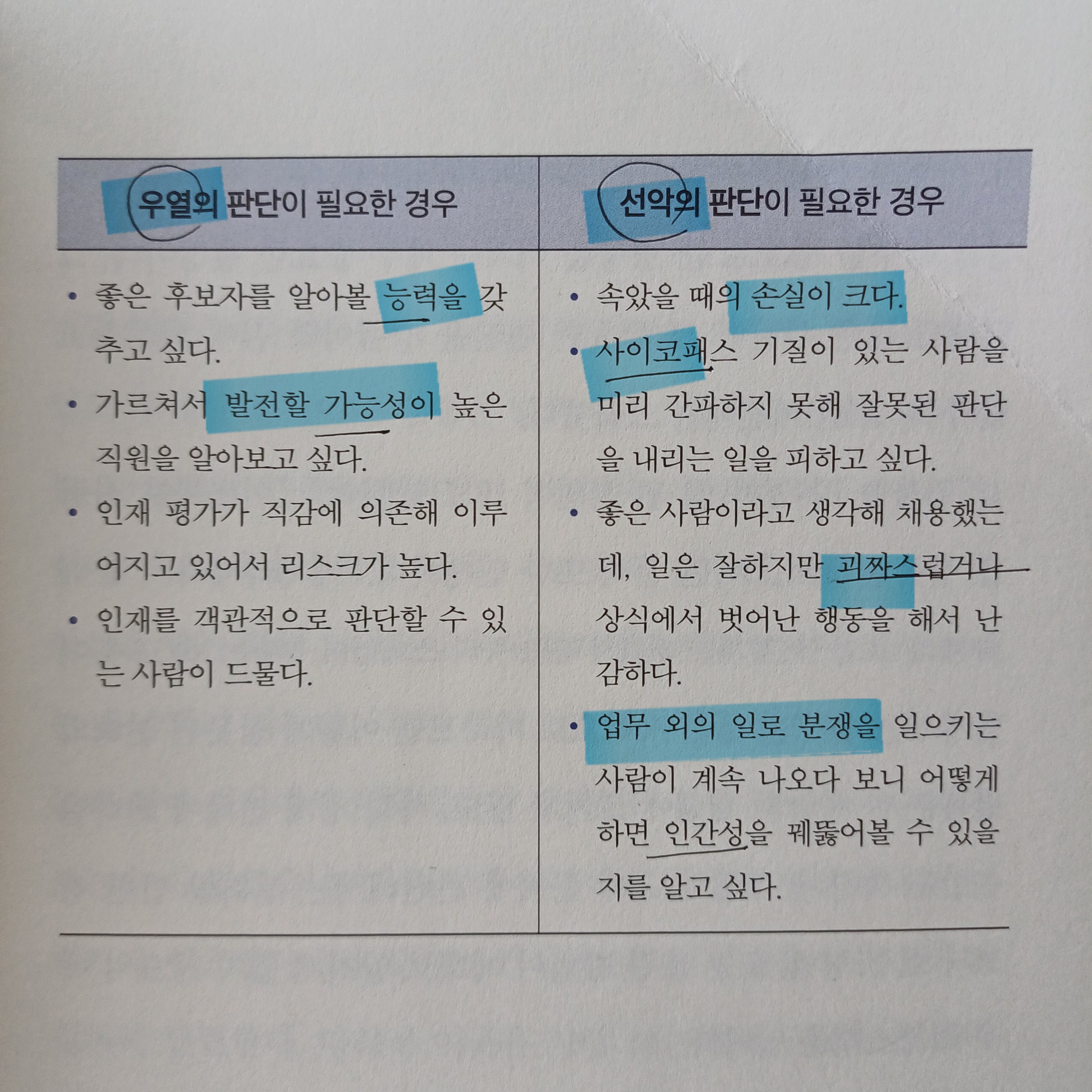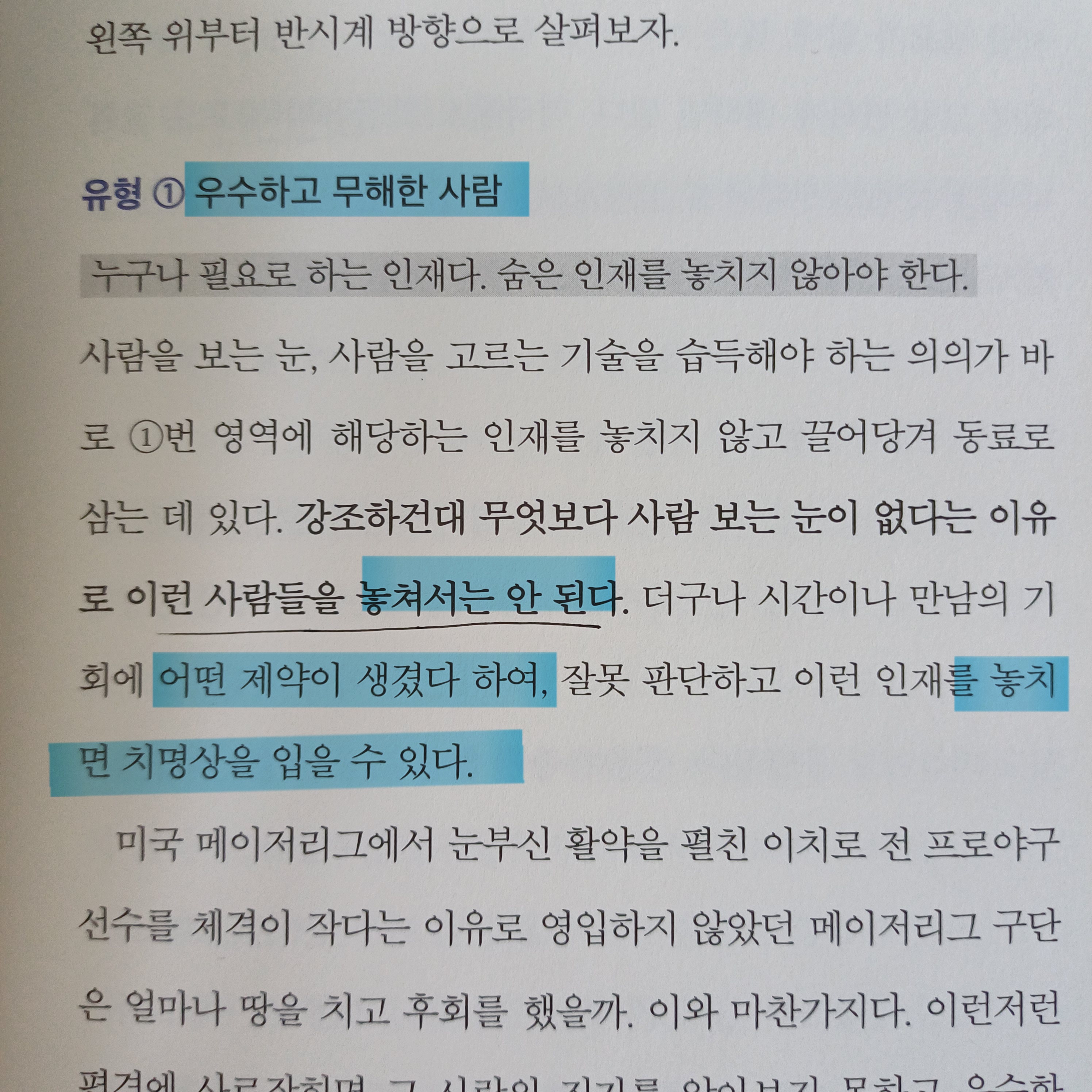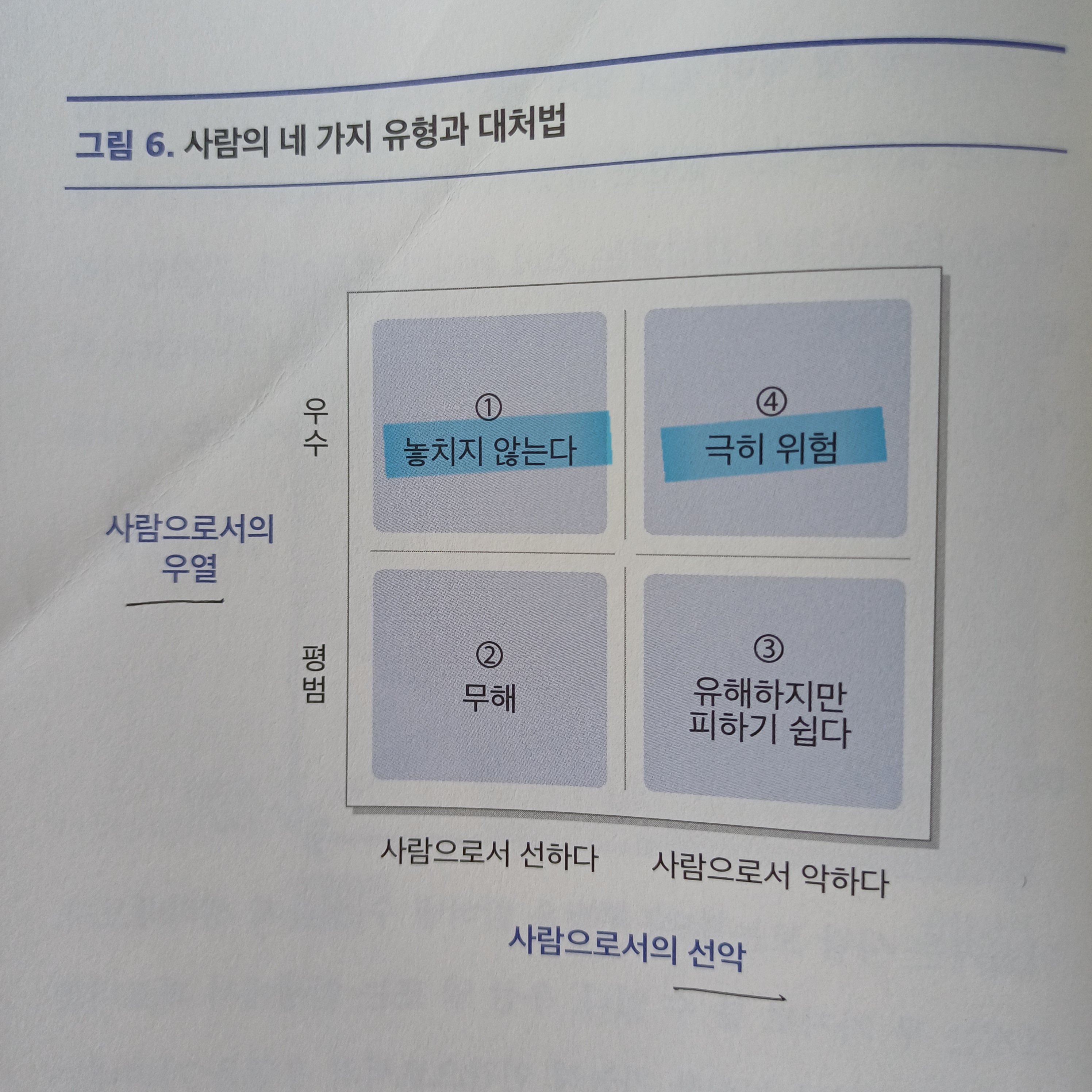 어떤 제약에도 놓쳐서는 안되는 인재상을 제시한다. 4사분면으로 나누어 우열과 선악을 기준으로 판단하는 것이 흥미로웠고 상당 부분 공감이 됐다.
