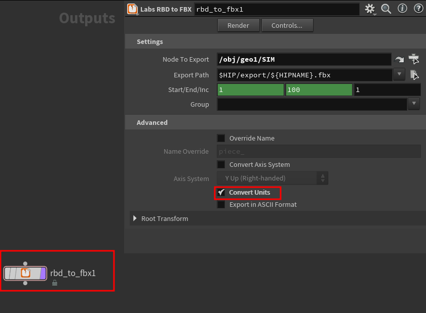또한, 반드시 Labs에서 제공하는 Labs RBD to FBX 노드를 이용해 추출한다.
