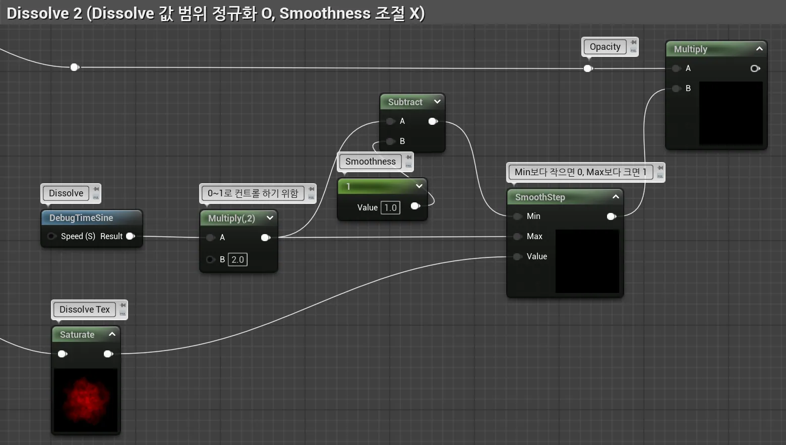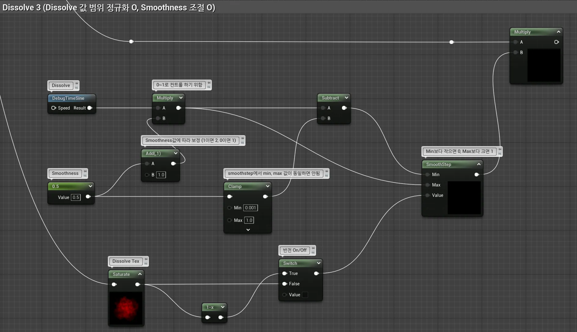 만약, 여전히 디졸브가 어렵게 느껴진다면 보통 smoothstep 내용을 이해하지 못한 것이다.