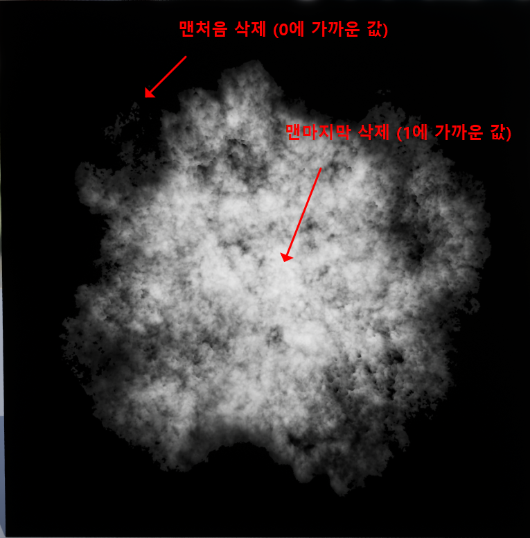 시간에 따라 1에서 0으로 바꾸는 것에 있다. 왜냐면 결국 Opacity에 곱해서 적용하기 때문이다.