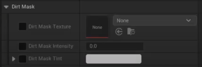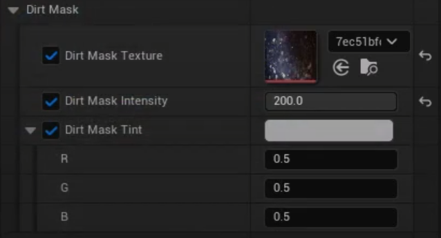 - Dirt Mask Texture 체크박스 활성화한 후 텍스처 입력