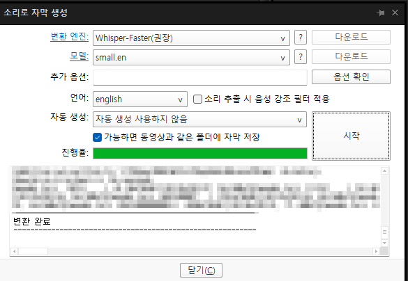 * 최초 실행시 : 변환 엔진 옆에 다운로드 버튼을 눌러야함