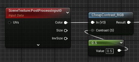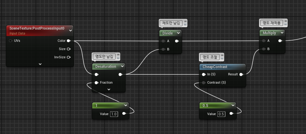 예시는 포스트 프로세스이기 때문에 Scene Texture를 사용했지만, 일반 surface에 적용해도 문제 없다.