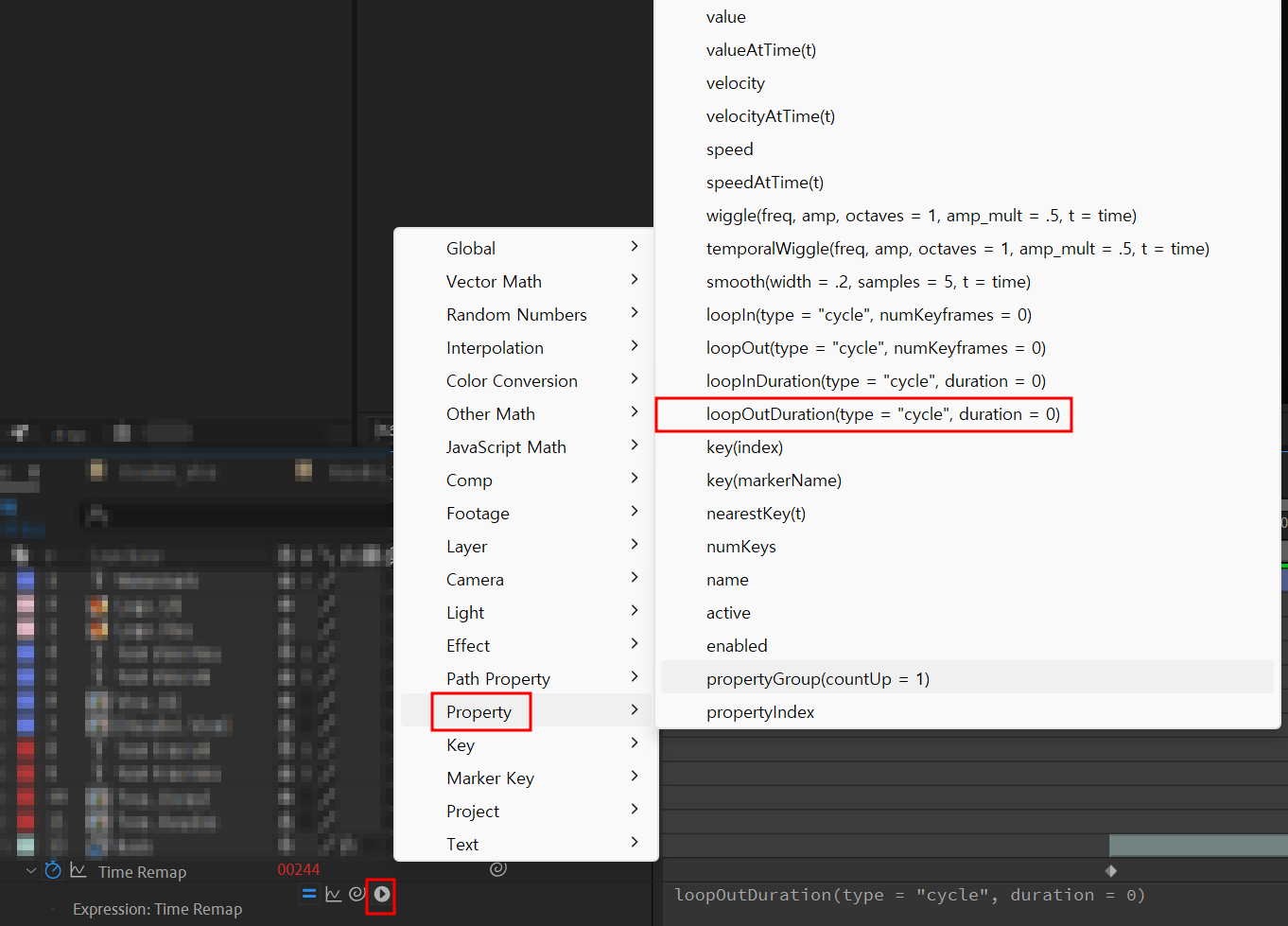 Time Remap 좌측에 타이머 표시에 Alt + 좌클릭