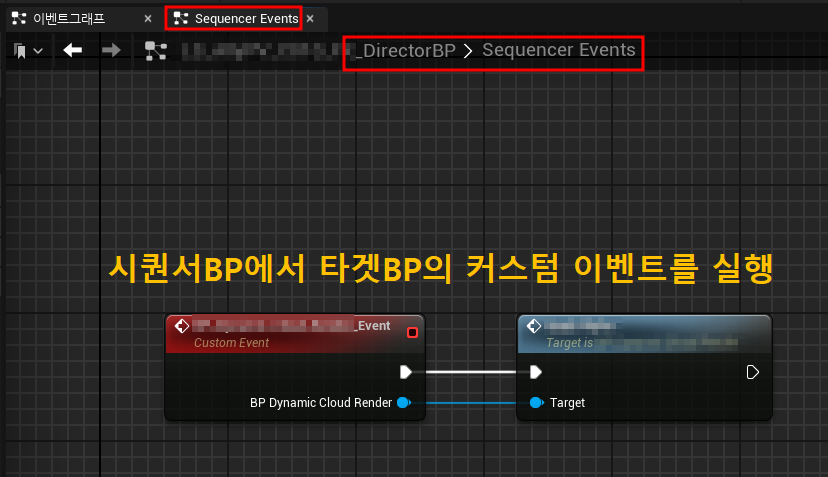 3. 시퀀서 디렉터 BP로 자동 연결되며, 타겟 BP의 원하는 기능을 커스텀 이벤트로 실행