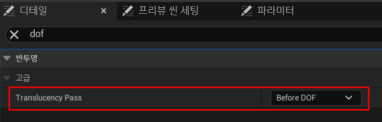 - Translucency Pass: After DOF 일 때 (기본값)