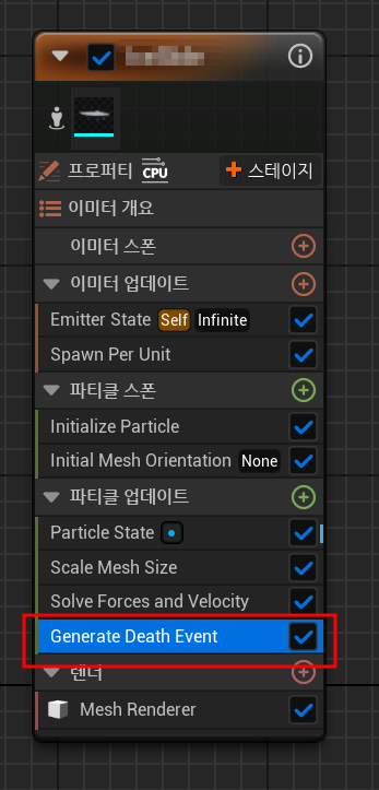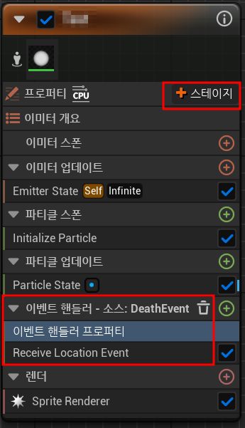 이벤트 발생시 죽은 자리에 또 다른 파티클을 생성하는 방법을 정리한다.