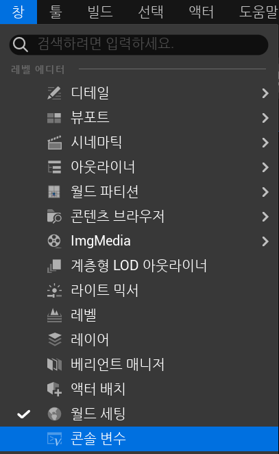 창에서 다음과 같이 콘솔 변수를 열 수 있다.