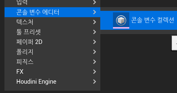 프리셋을 제작해 사용하는 방법은 콘솔 변수 컬렉션 에셋을 만드는 것이다.