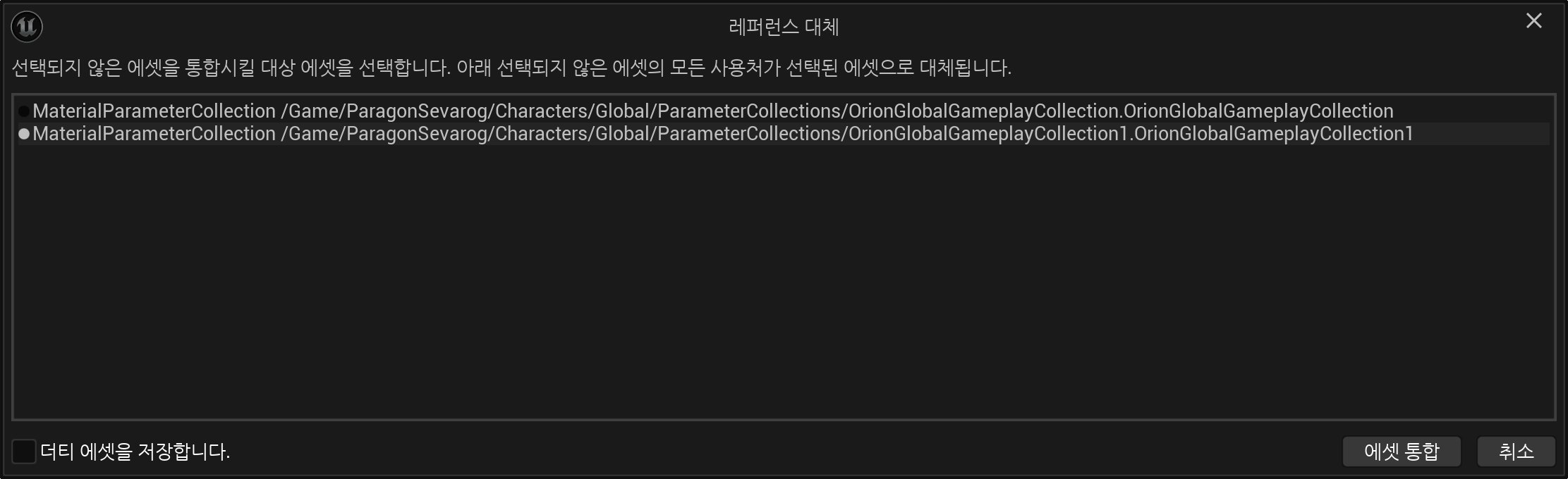 1이 붙어있는 복제본을 선택해서 에셋 통합한다.