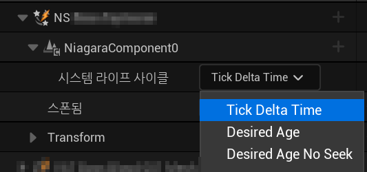 Age Update Mode 를- Tick Delta Time (권장) 으로 변경