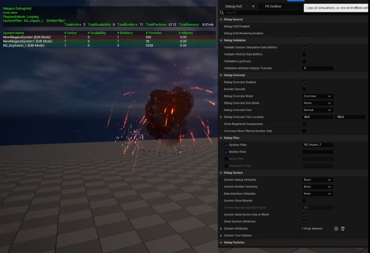 - MB: 해당 나이아가라 시스템이 사용하고 있는 총 메모리 양을 나타냅니다 [01:07]. 마지막으로, '총 파티클(Total Particles)' 항목을 통해 레벨 전체에서 생성되는 파티클의 수를 실시간으로 업데이트하며 확인할 수 있음을 보여주며 영상이 마무리됩니다 [01:10].