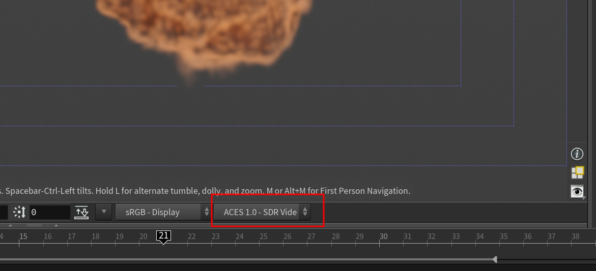 2. 뷰포트 하단에 창에서 ACES로 설정한다.