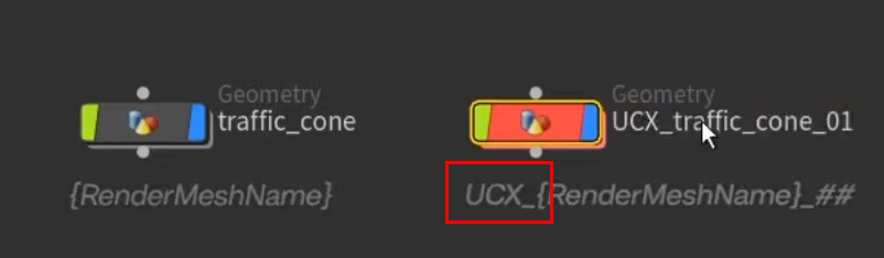 - 규칙 설명: 접두어 UCX_ 뒤에는 반드시 렌더 메쉬와 동일한 이름이 와야 합니다. 뒤에 붙는 숫자는 여러 개의 충돌 메쉬가 있을 경우 이를 구분하기 위한 접미사