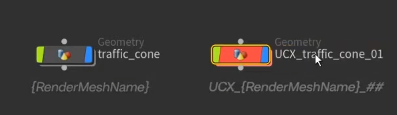 - 충돌 메쉬 이름(필수 규칙): 충돌용 Geometry 노드의 이름은 반드시 UCX_ 접두어로 시작
