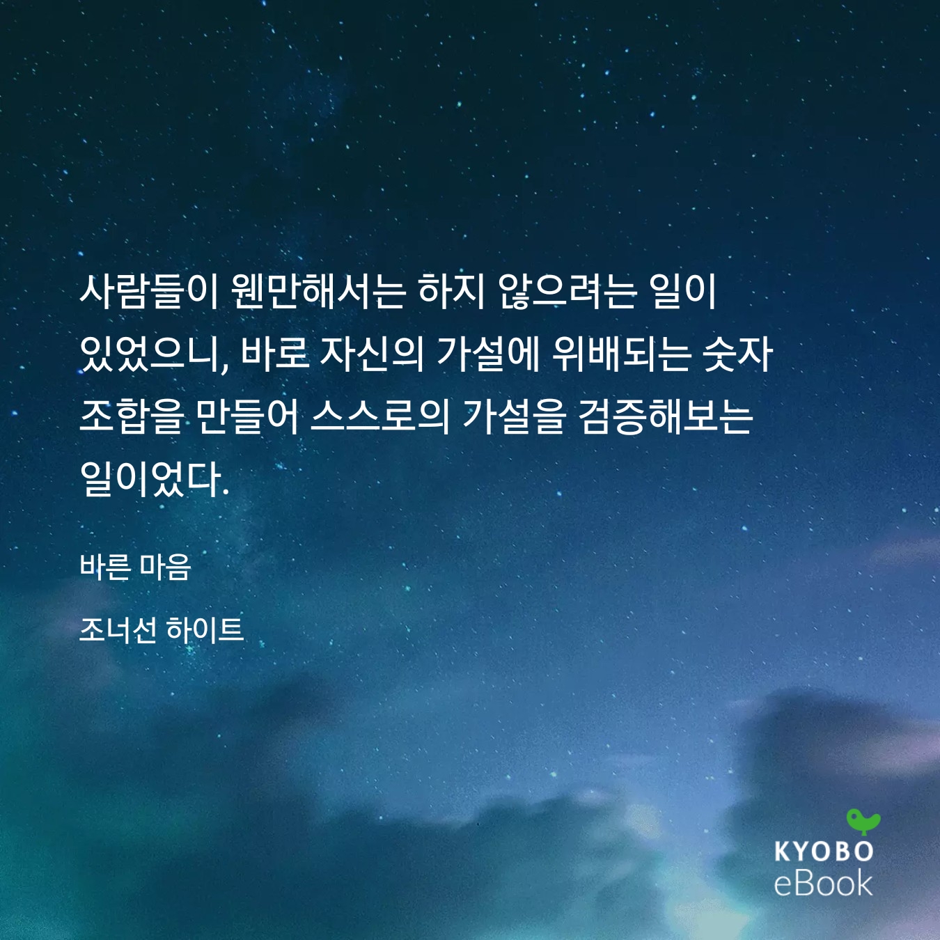 평판을 지키기 위해 사후논변을 지어내는 사람의 본성을 조명하는 책이다. 집단에서 배척되지 않기 위한 생존행위라는 점을 이해하고 나면, 나의 부족한 모습 그리고 남의 부족한 모습을 있는 그대로 바라볼 수 있게 도와준다.