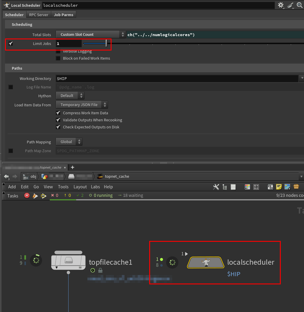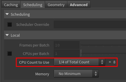 - 로컬 스케줄러(Local Scheduler): 이 기능은 기본적으로 로컬 컴퓨터의 CPU 코어를 사용하여 작업을 분산합니다. 사용자는 사용할 최대 코어 수를 지정하여 후디니 메인 작업에 방해가 되지 않도록 리소스를 조절할 수 있습니다.