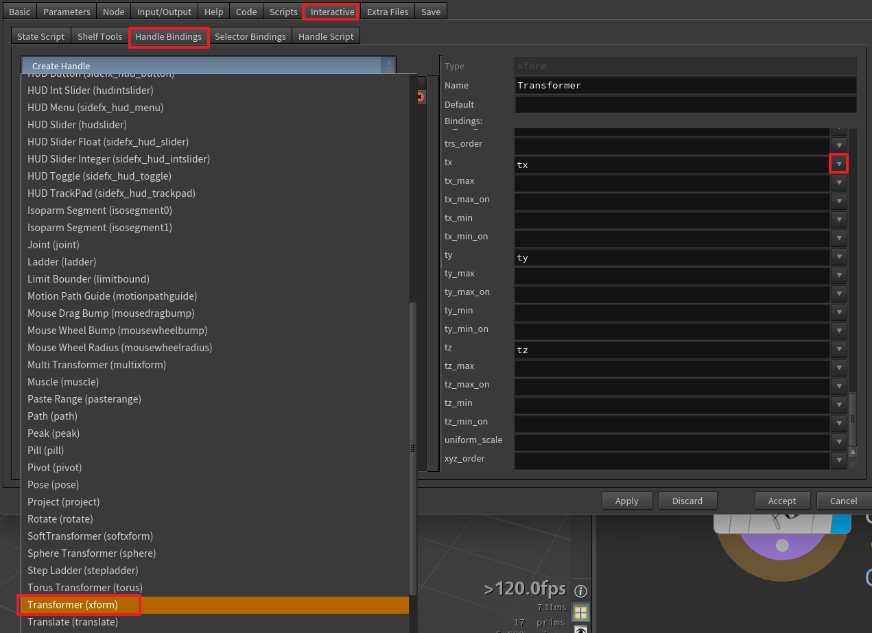 3. interactive - handle bindings에서 transformer 핸들을 추가한다.
